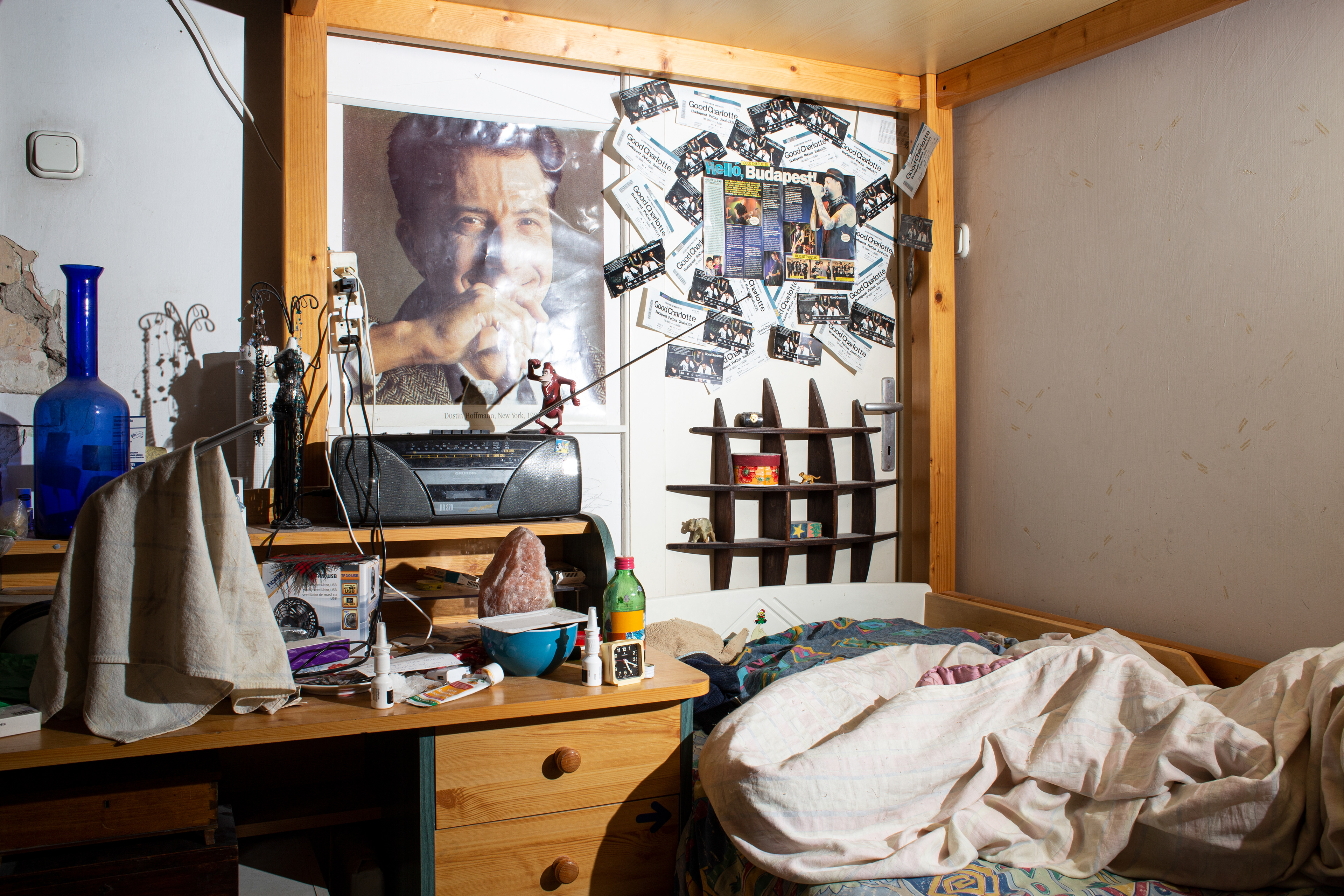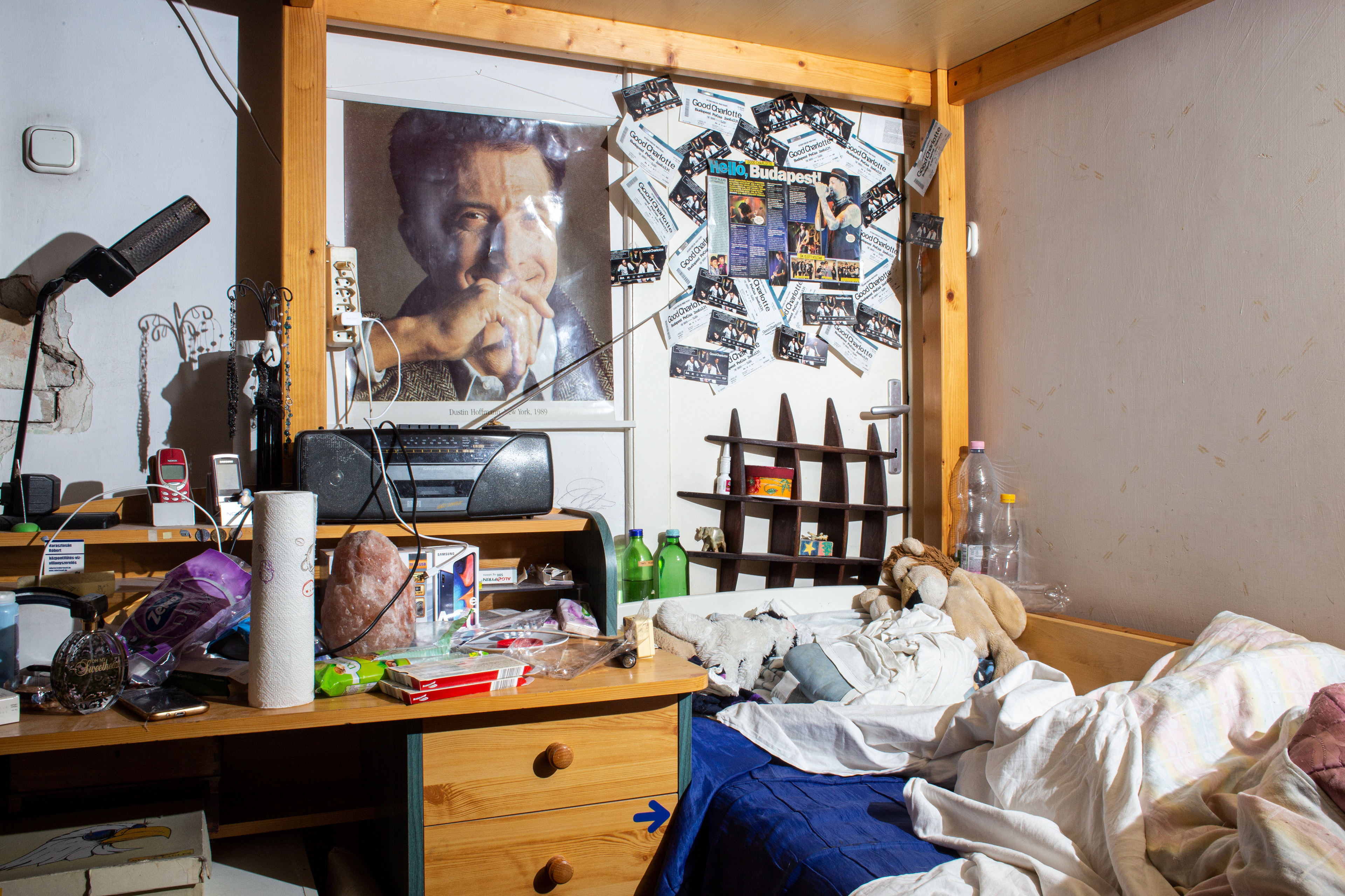 HUN// Egy gyerek életében mély nyomot hagy, ha bántják. Nehezen küzd meg ezzel az élménnyel, és azzal is, hogy milyen mintát visz tovább. Tévképzet alakulhat ki arról, mi a valóság, mettől meddig tart az „én”, és mi a saját környezete. Mi az otthon? Életem során rengeteg helyen kerestem az otthonom, már kislányként is sok időt töltöttem barátoknál. Fotósorozatom kiindulópontja ebben a helyzetben az anya és a gyerek ambivalens kapcsolatát vizsgálja, amelyet a mai napig bennem rejlő gyermeki remény erejével mutatok be. A reményvesztett otthon bizonytalanságából merített teremtő erő – vagy talpon maradás. Egyszer minden rendben lesz. Ez a kapcsolat reflektál az otthonkeresés nehézségeire, arra a -talan, -telen állapotra, amikor se itt nem vagy, se ott.