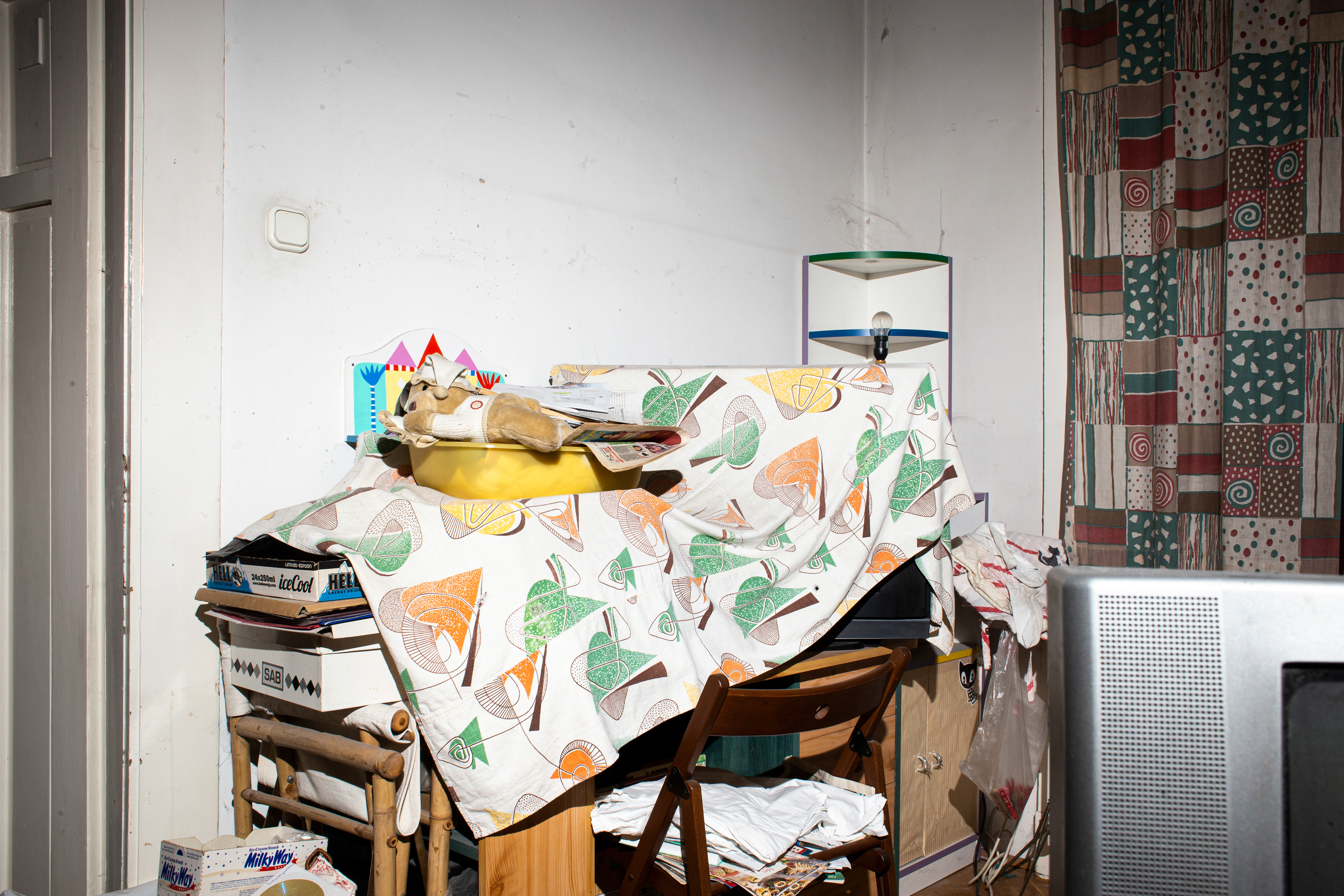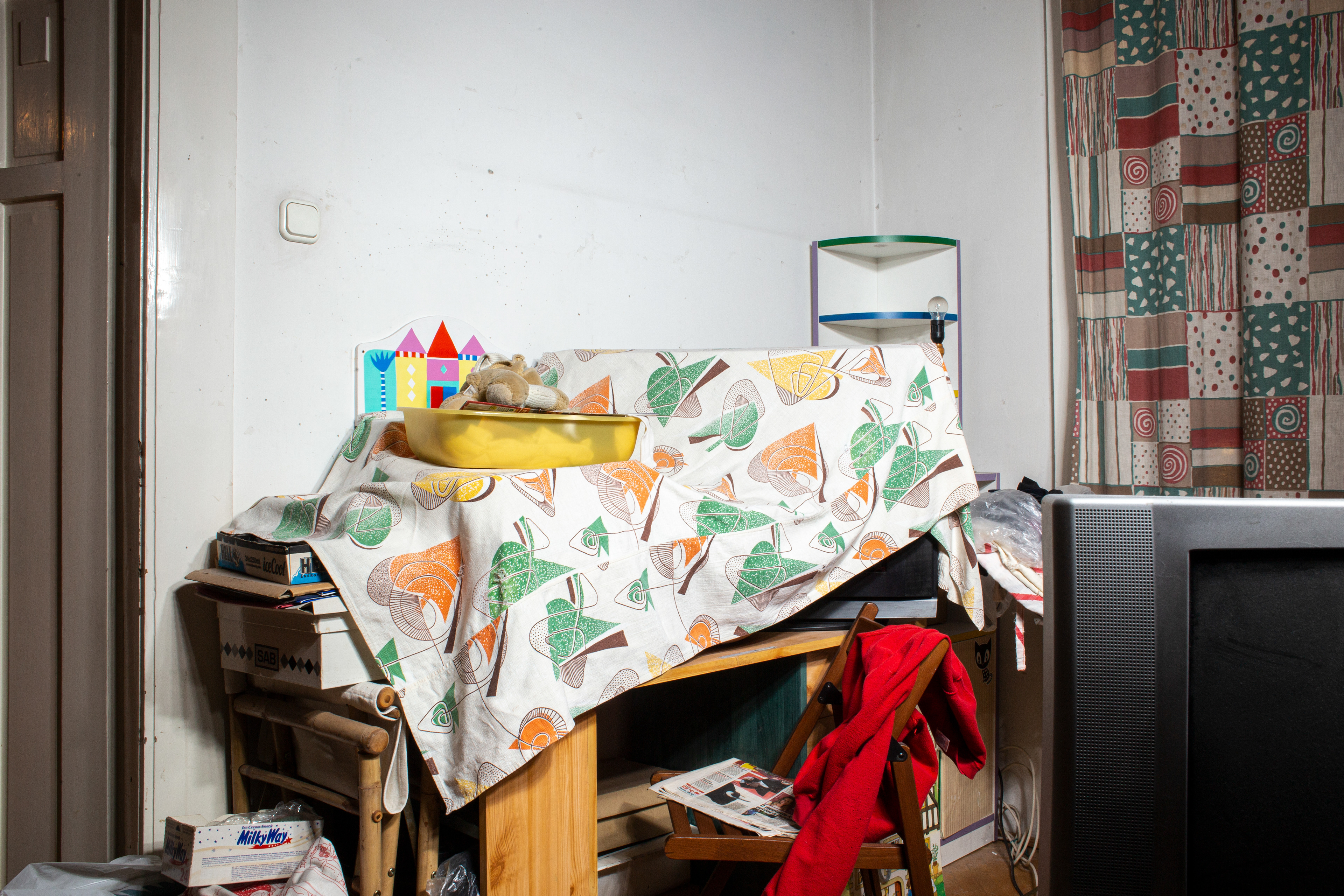 ENG// Being hurt leaves a deep imprint on a child’s life. It is difficult to cope with such an experience, as well as with the question of what patterns one will carry forward. A child may develop misconceptions about what reality is, where the boundaries of the “self” lie, and what belongs to their environment. What is home? Throughout my life, I have searched for a place to call home; even as a little girl, I spent much of my time at friends’ houses. The starting point of my photo series is the examination of the ambivalent relationship between mother and child—a relationship I depict through the strength of the childlike hope that still lives within me. It is a creative force, or perhaps simply the ability to remain standing, drawn from the uncertainty of a hopeless home. One day, everything will be alright. This relationship reflects the difficulties of searching for home, that state of being nowhere and everywhere at once, when you belong neither here nor there.